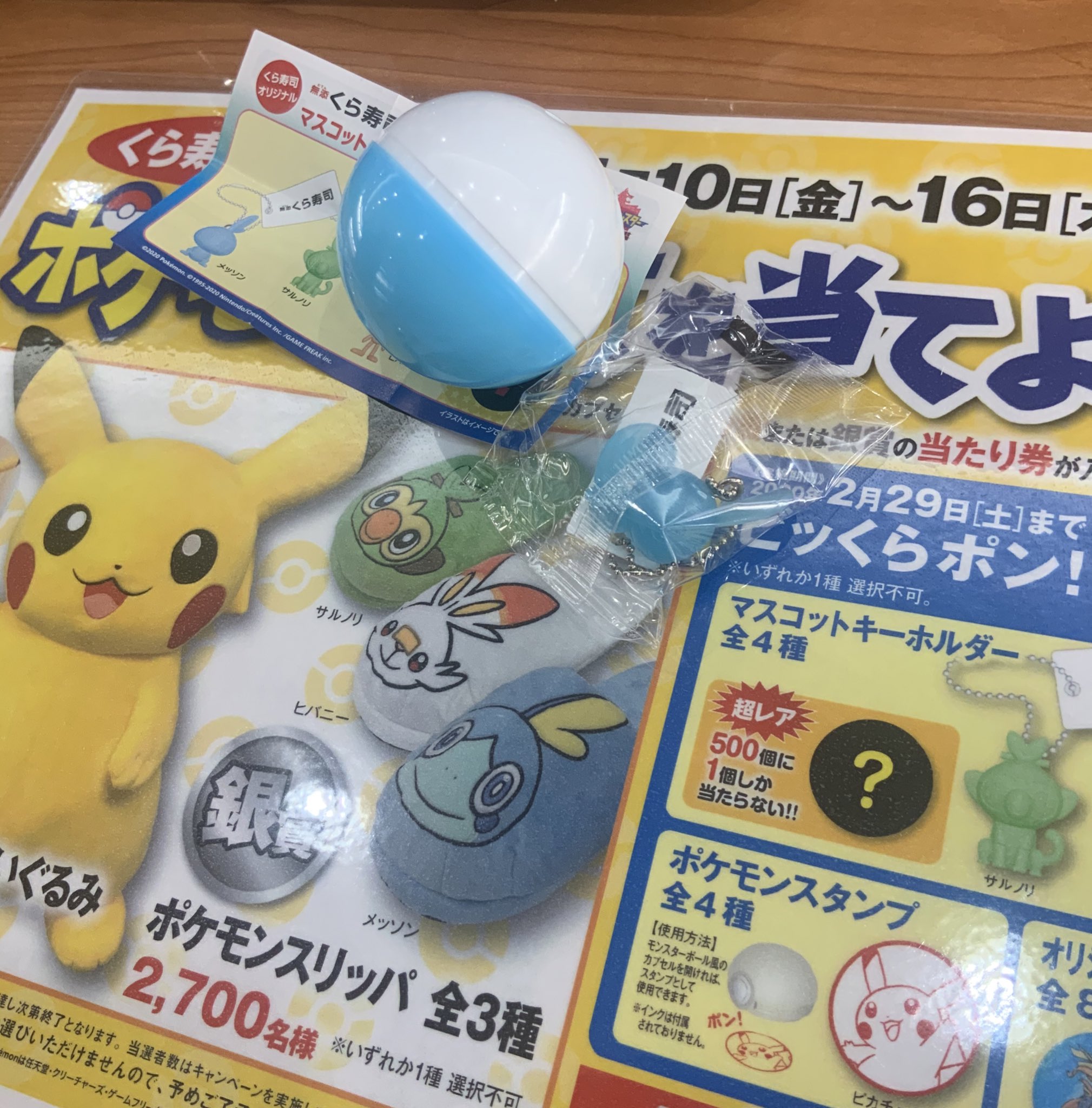 無添くら寿司 公式 no twitter 2月29日 土 までビッくらポン 景品は全てポケモングッズ マスコットキーホルダーやポケモンスタンプ オリジナルぷくぷくマグネットなど盛りだくさん 500個に1個しか当たらない超レアなマスコットキーホルダーも しかも