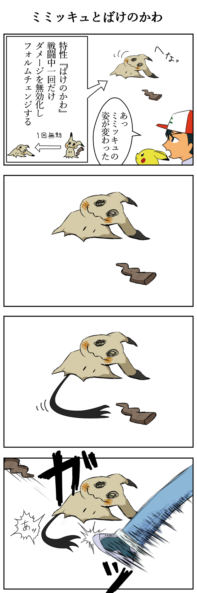 ばけのかわ 再現 特性でダメージを受けないミミッキュvがピカチュウデッキと正面対決 ポケカ対戦 一撃マスター