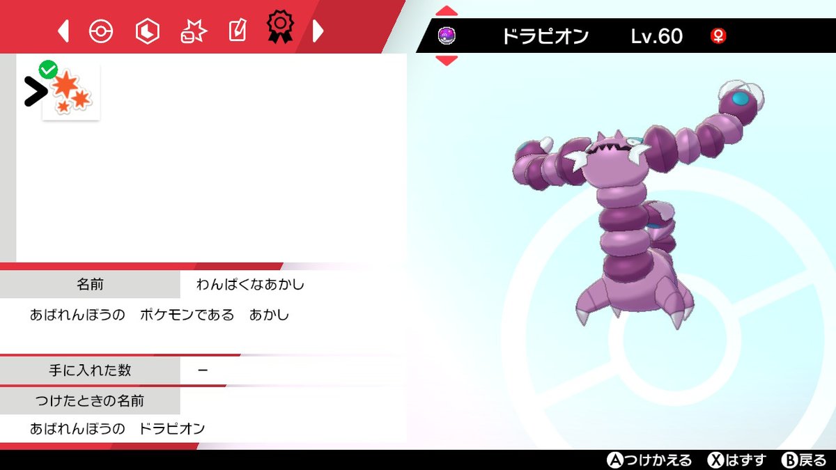 おきざりす on twitter わんぱくのあかし あばれんぼうのドラピオンやっっとでた 期間丸1ヶ月 出た色違い三匹 残りはクールなロトムのみ ポケモン剣盾 nintendoswitch