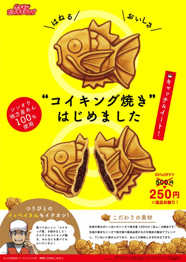 シンオウ地方産あん100 ポケモン コイキングたい焼き登場 秋葉原や横浜 くりこ庵 限定販売 medery character s