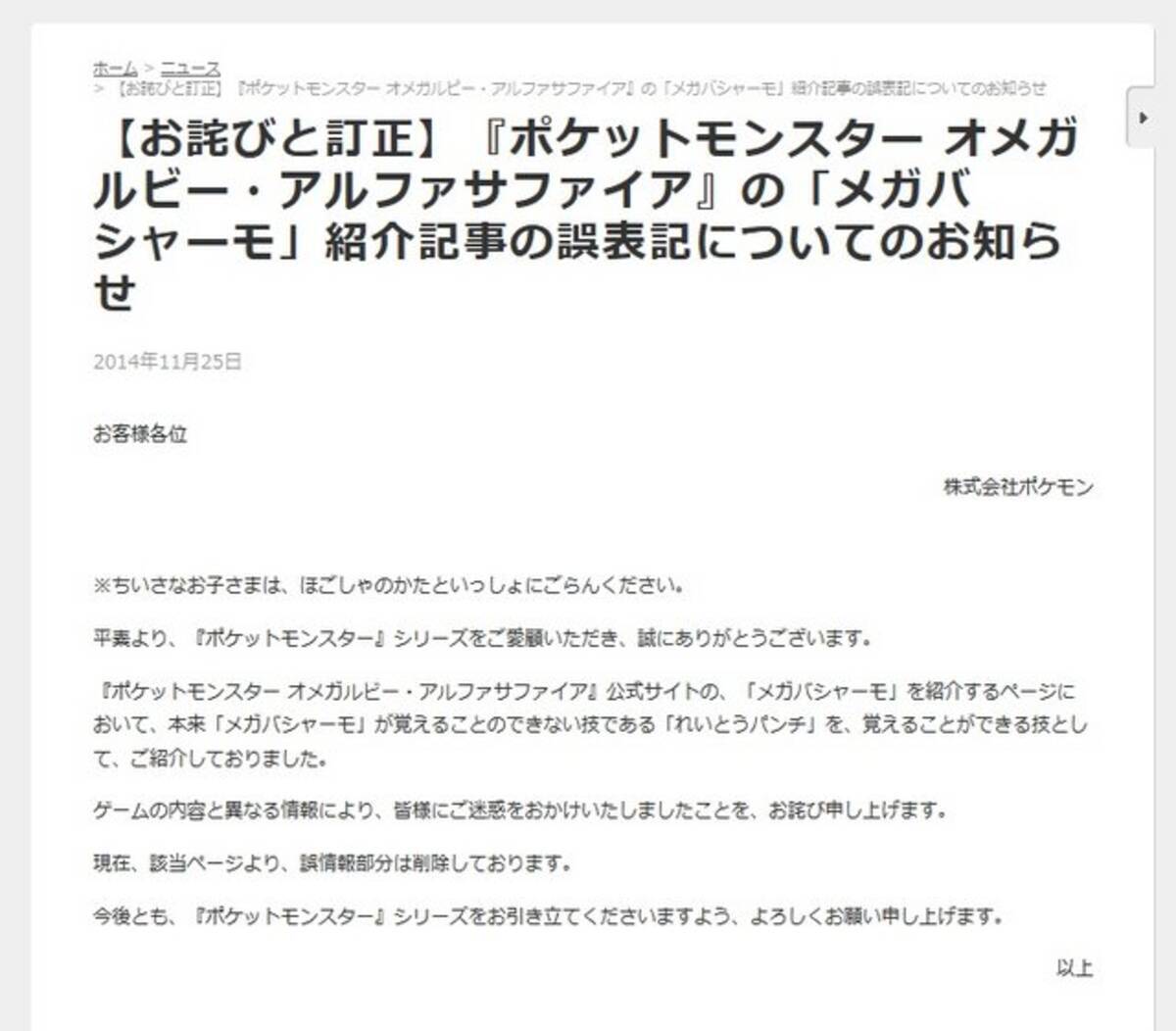ポケモン oras バシャーモが れいとうパンチ を覚えるというのは誤表記 公式サイトにて謝罪 2014年11月25日 エキサイトニュース