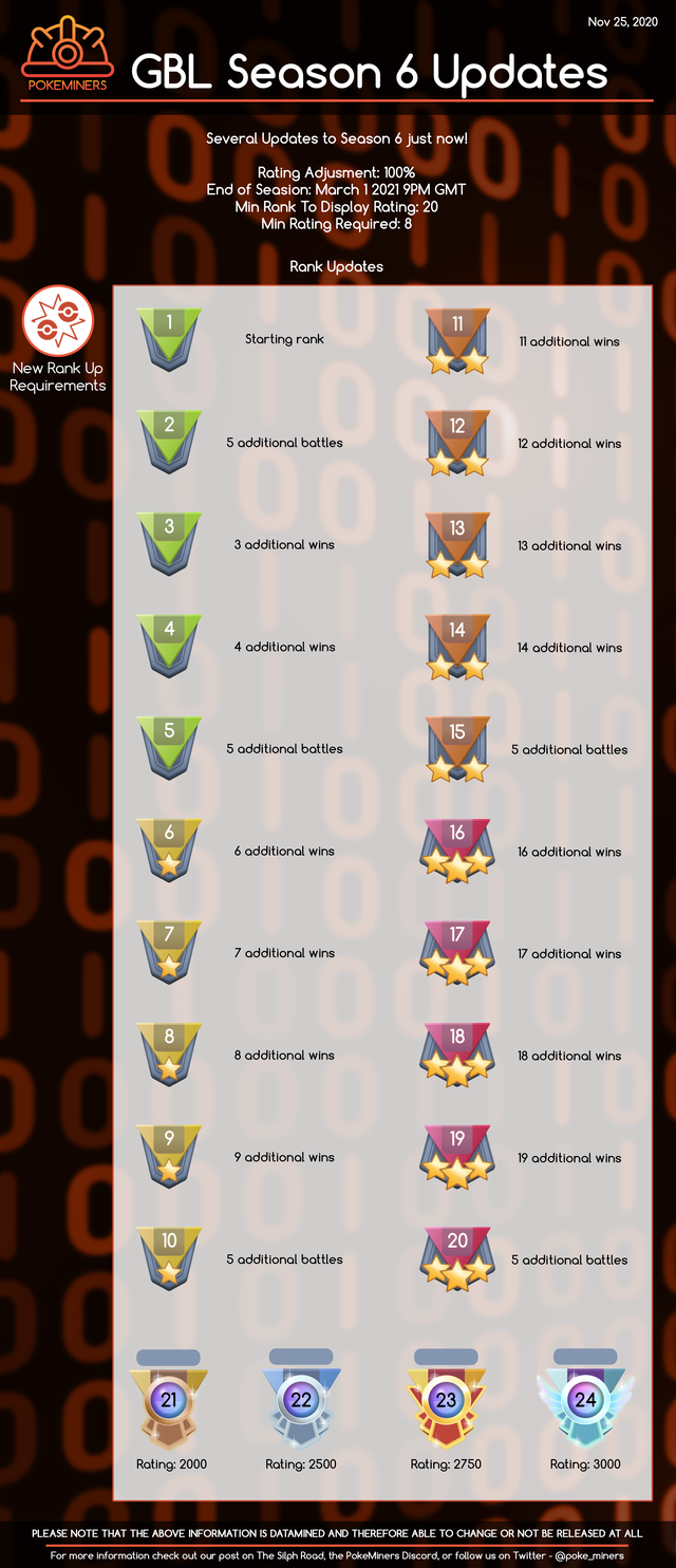 ポケモンgo攻略情報 ポケマピ on twitter goバトルリーグシーズン5の日程と内容 日付は暫定的なもの が発表されました シーズン5はレート廃止 努力でランク10になれる ランク7達成報酬 すごいわざマシンスペシャル ランク10達成報酬 マスクド ピカチュウ