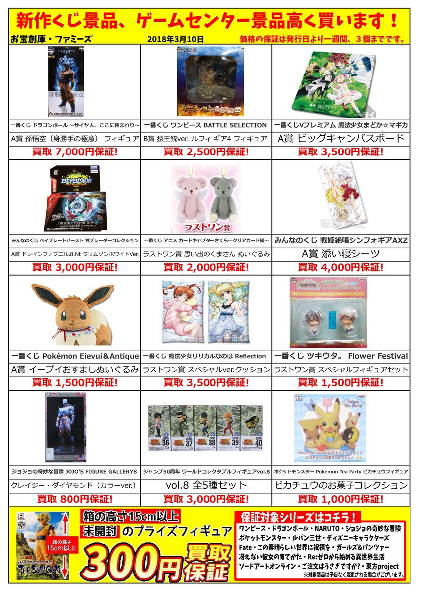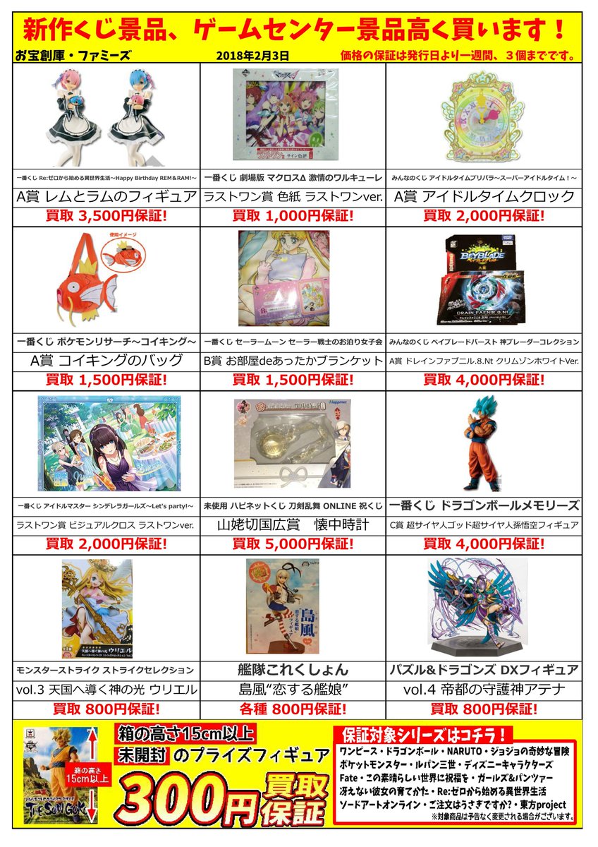 ট ইট র お宝創庫 大府店 アルバイト募集中 買取保証価格表更新です 昨日誕生日を迎えた リゼロ レム ラム一番くじフィギュアや ポケモン コイキングバッグ これは個人的にも欲しい など あなたのお持込お待ちしております