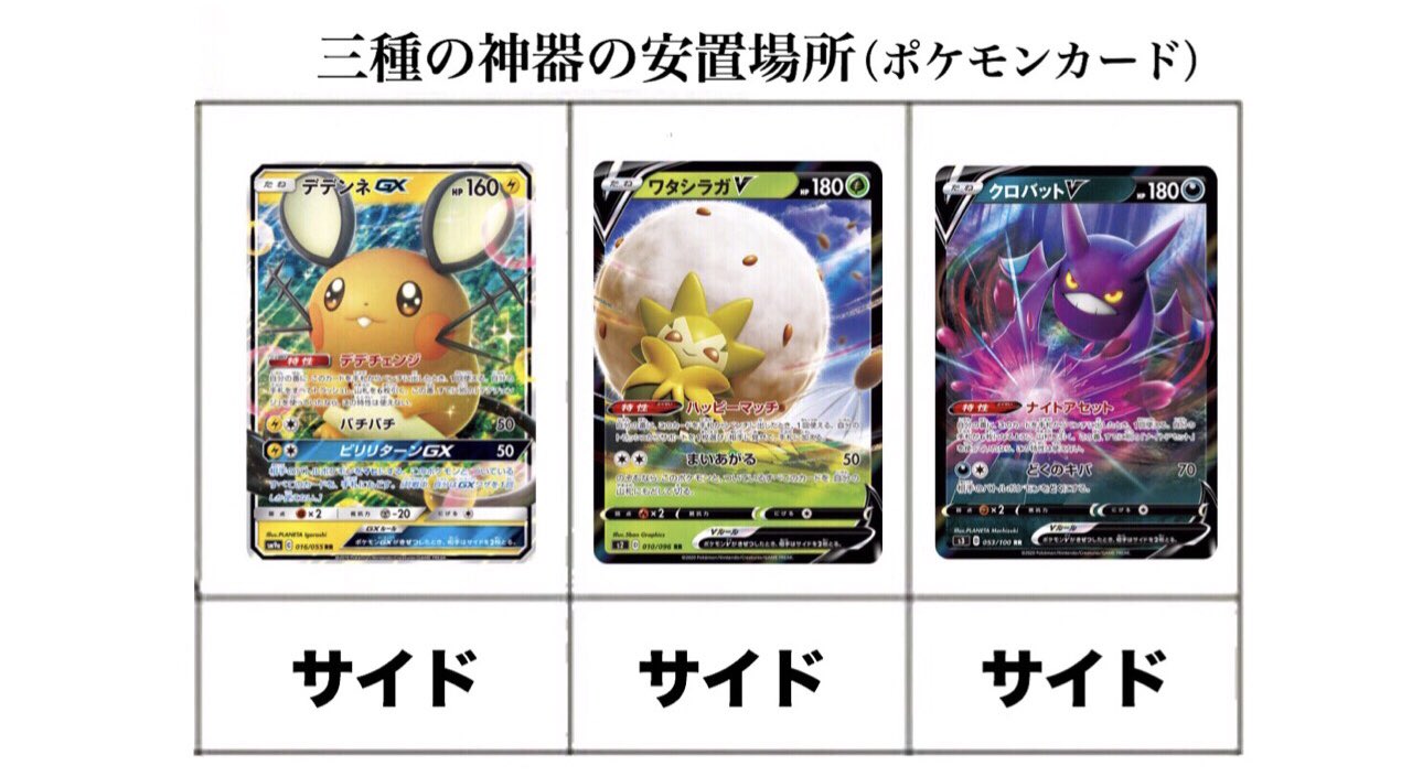 えでん ポケカ on twitter 三種の神器とは デッキを円滑に回すために使用される三枚のカードであり それぞれ下記の表に示す場所に厳重に保管されている