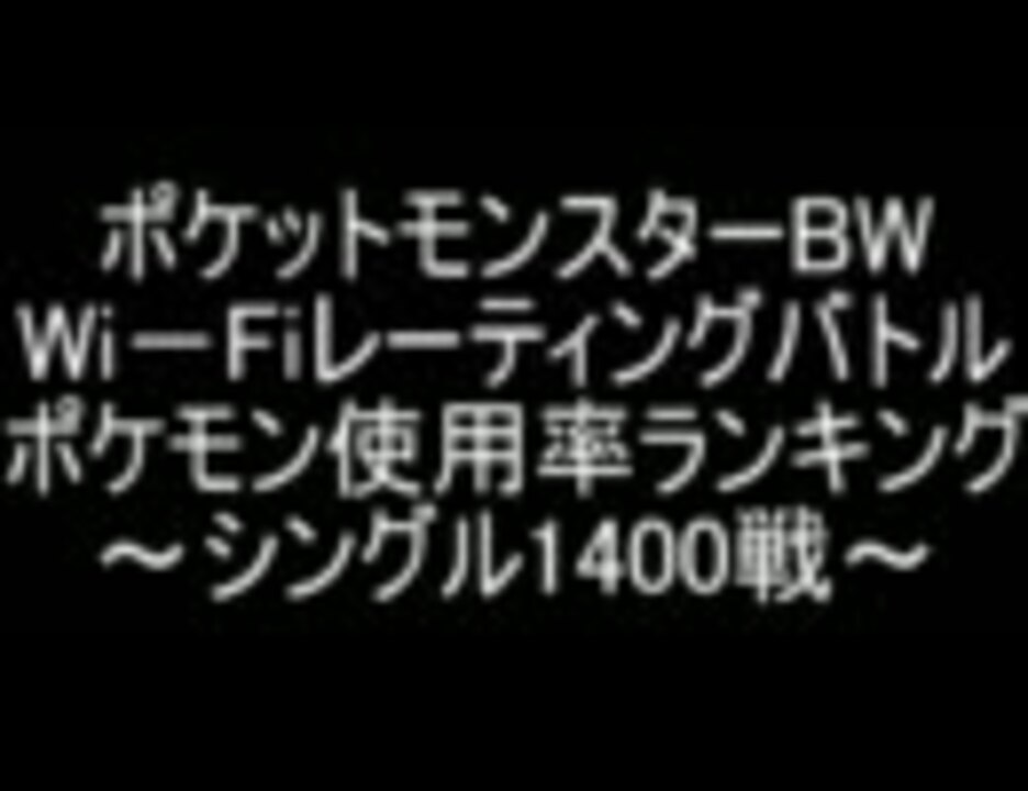 ポケモンbw wi fiレーティングバトル 使用率ランキング シングル1400戦