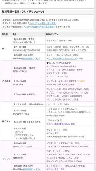 ポケモンsm 出現ポケモンの努力値一覧表 サンムーン努力値稼ぎおすすめスポット レコメンタンク