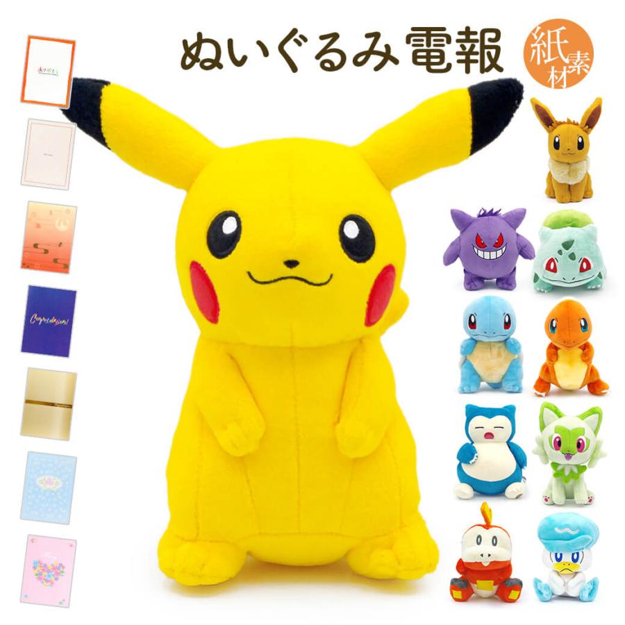 楽天市場 日本国内へ電報を送る お祝い電報 祝電 一般電報 ぬいぐるみ電報 いろんなお祝いシーンでオススメのぬいぐるみ ピカチュウ もこもこぬいぐるみ 電報屋のエクスメール 楽天市場店