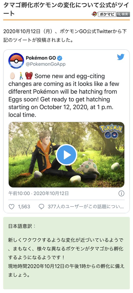 タマゴからかえるポケモンに変化が起こります pokemon go