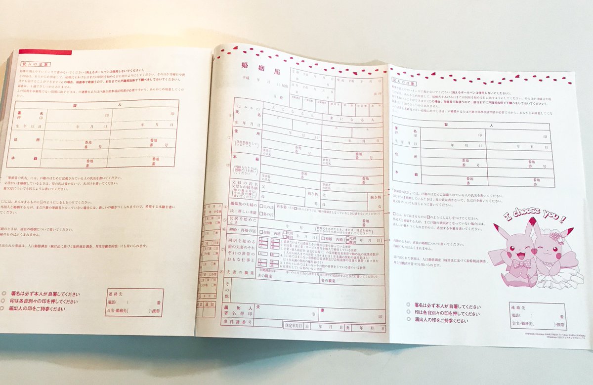 ポケモンのグッズ ついに婚姻届が登場 ピカチュウのデザイン