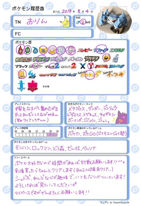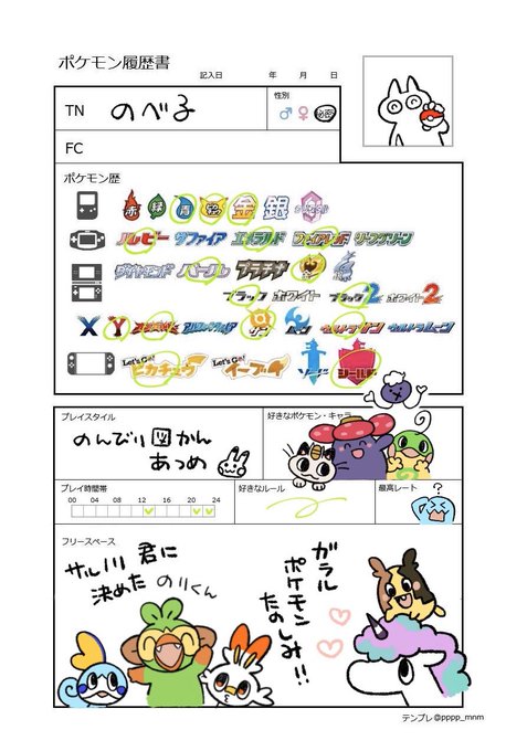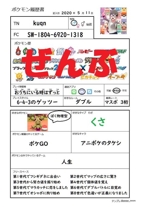 ポケモン履歴書テンプレ pppp mnm twitter