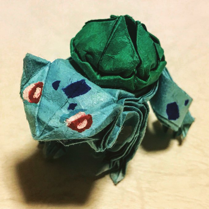 石橋秀夫 ばっしゃん ori bashi on twitter お早うございま ポケモン映画 ミュウツーの逆襲evolution を見たので それを記念してカントー御三家のフシギダネ ヒトカゲ ゼニガメの折り紙です 以前に公開した写真とはちがうバージョンですね