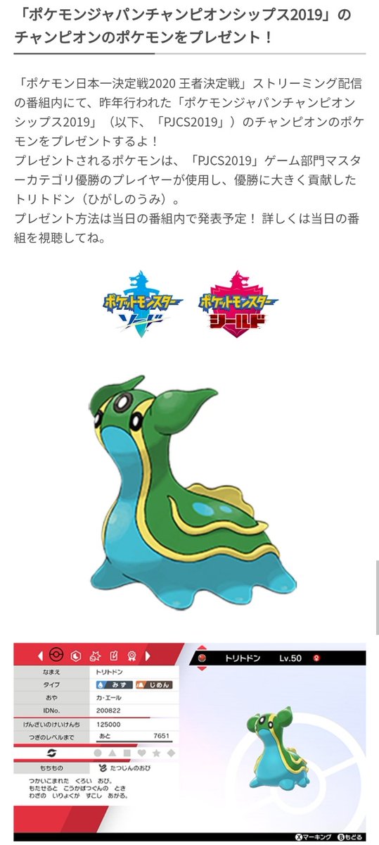 ポケモン ポケモン日本一決定戦2020 王者決定戦 の様子を8月22日にストリーミング配信決定 チャンピオンポケモン トリトドン のプレゼントも social game info