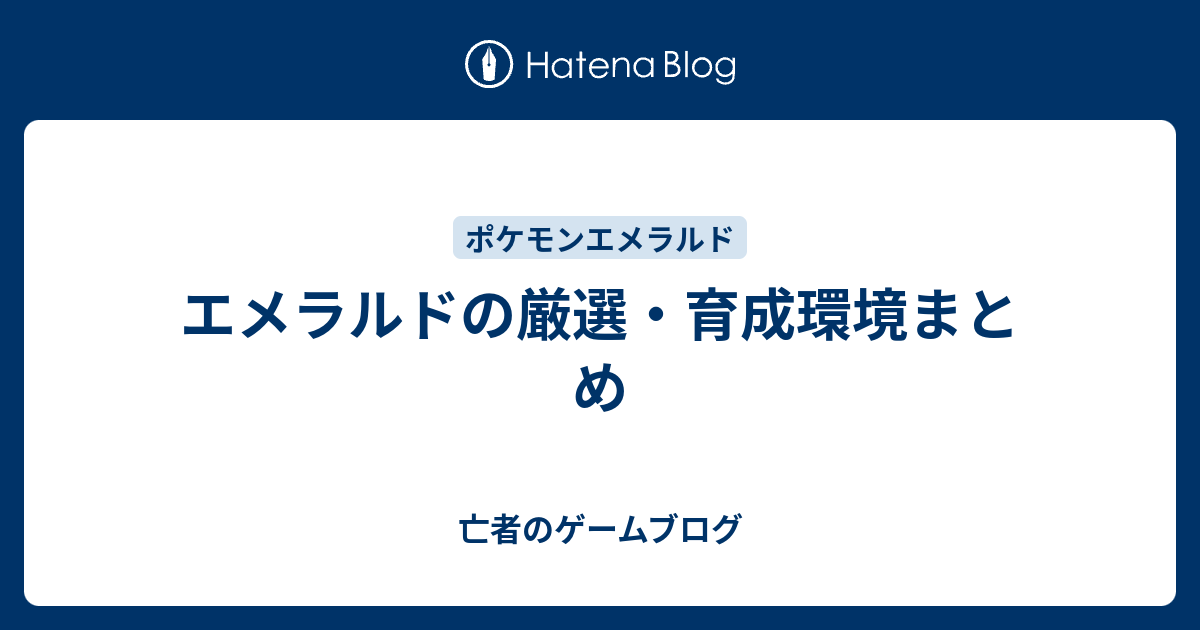 エメラルドの厳選 育成環境まとめ 亡者のゲームブログ