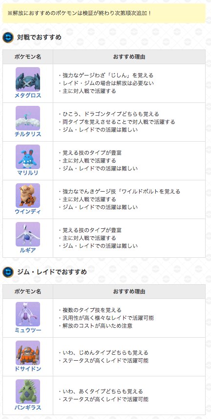 ポケモンgo 解放におすすめポケモンは サードアタックを覚えさせて活躍の幅を拡大