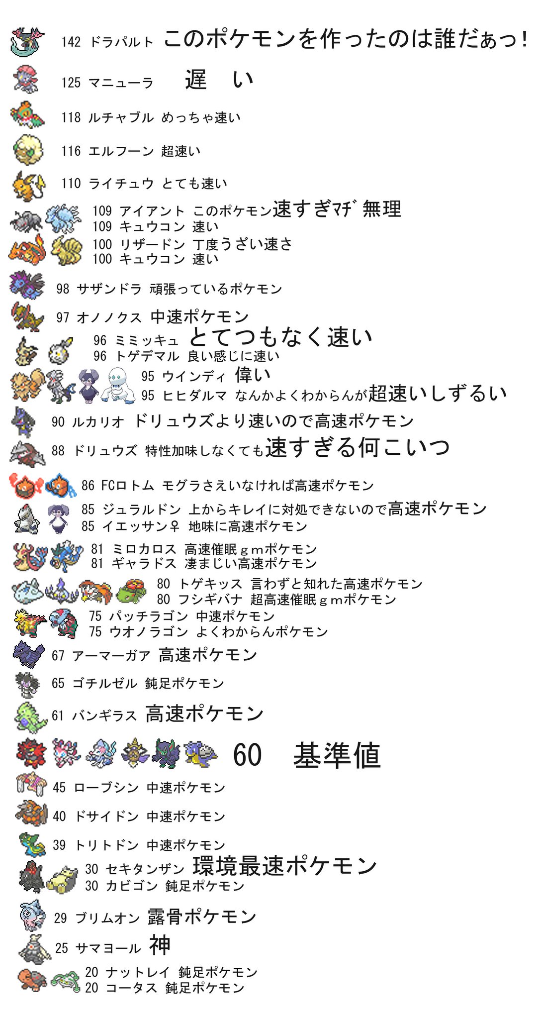 uzivatel ボンテ na twitteru ダブルランクマやっててよく見るポケモン達に対峙した時に感じる個人的な素早さの体感的な印象