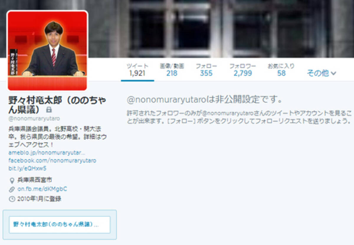 号泣会見の野々村竜太郎が自身の発言の場 twitter を非公開にする暴挙に 2014年7月4日 エキサイトニュース
