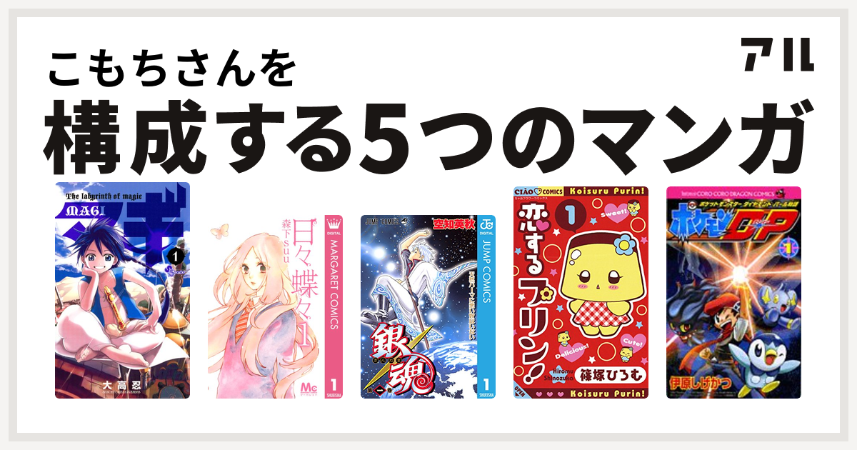 こもちさんを構成するマンガはマギ 日々蝶々 銀魂 恋するプリン ポケモンd p ポケットモンスターダイヤモンド パール物語 私を構成する5つのマンガ アル