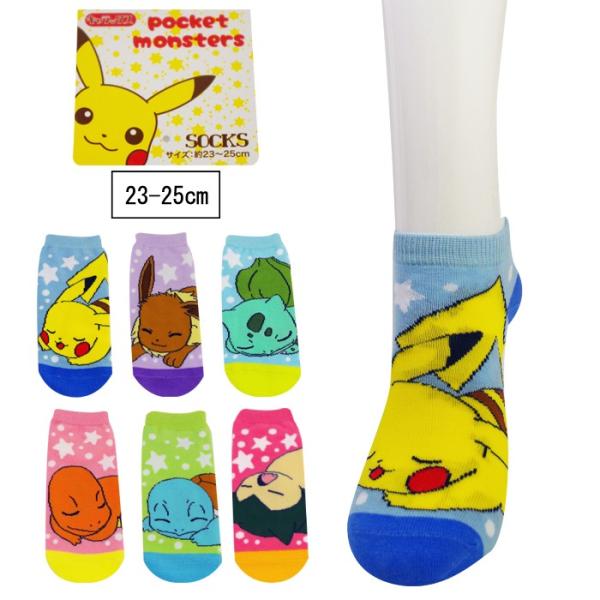 レディース ソックス 靴下 ポケットモンスター ポケモン ぴかちゅう ピカチュウ くるぶし 丈 23 25cm 通学 通勤 婦人 大人 中高生 キャラ キャラクター メール便25 靴下専門店 コポ