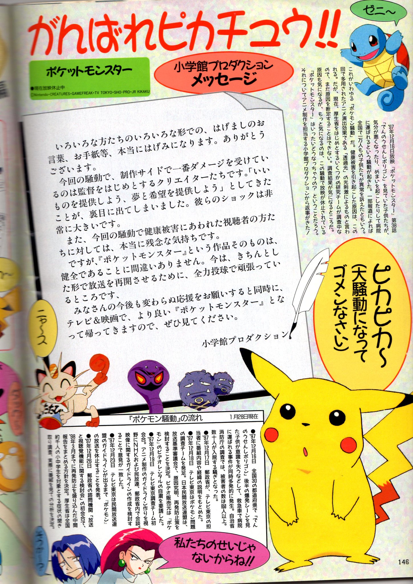 おみねみやこ9 オホツクの鮭 twitter પર あれから22年 ポケモン全く知らなかったおいらはこの騒動で逆にピカチュウ好きになってぬいぐるみやポケットピカチュウ買ったものじゃ ポケモンショック
