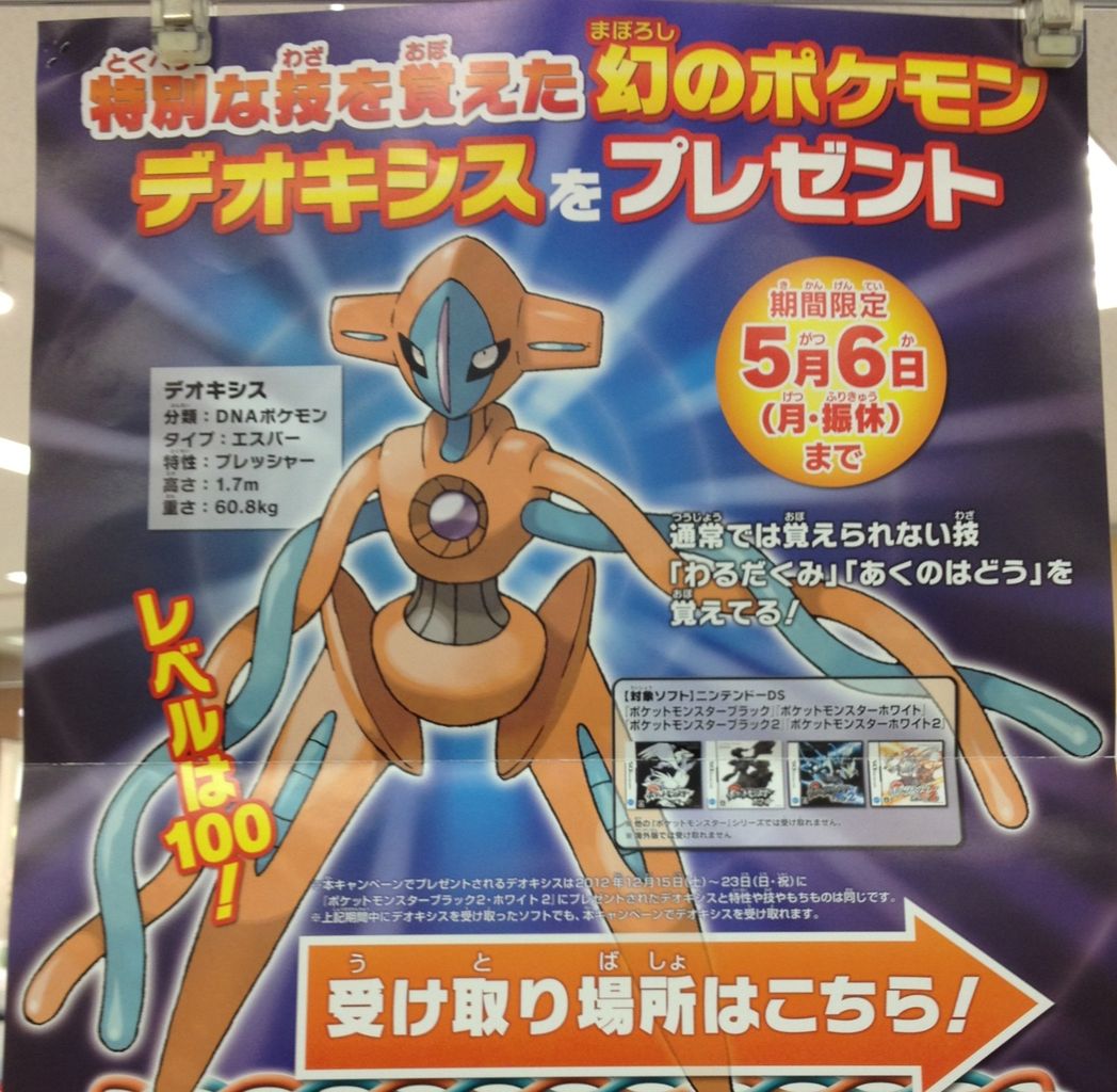 ポケットモンスターブラック ホワイト ブラック2 ホワイト2 特別な技を覚えた幻のポケモン デオキシス を受け取れるチャンスが再び到来
