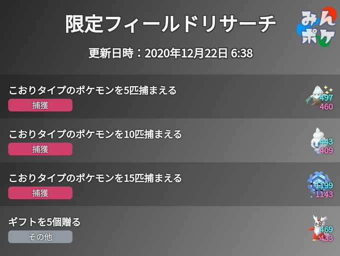 ポケモンgo こおりタイプのポケモンを5匹捕まえる のタスクで出現するポケモン ホリデーイベント boom app games