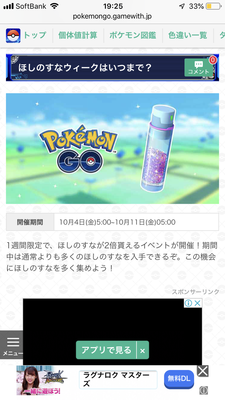 ほしのすな2倍イベント ポケモンgo