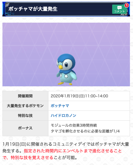 ポッチャマ コミュニティディは1 19 日 むぅの無課金ポケモンgo攻略ブログ
