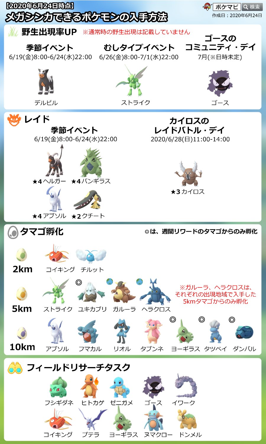 ポケモンgo攻略情報 ポケマピ على تويتر 今後メガシンカできるようになるポケモンの入手方法をまとめました 2020 6 24 水 時点 イベントで出現率がアップしたり レイドボスとして登場したりするので 要チェックです 画像はお気軽に保存 シェアしてください