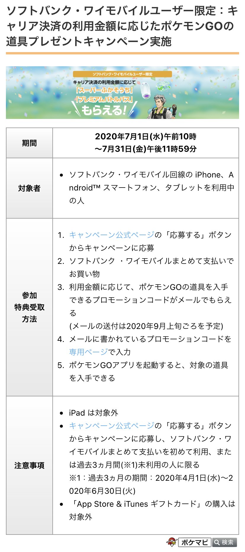 春の pokemon go 道具プレゼントキャンペーン スマートフォン 携帯電話 ソフトバンク