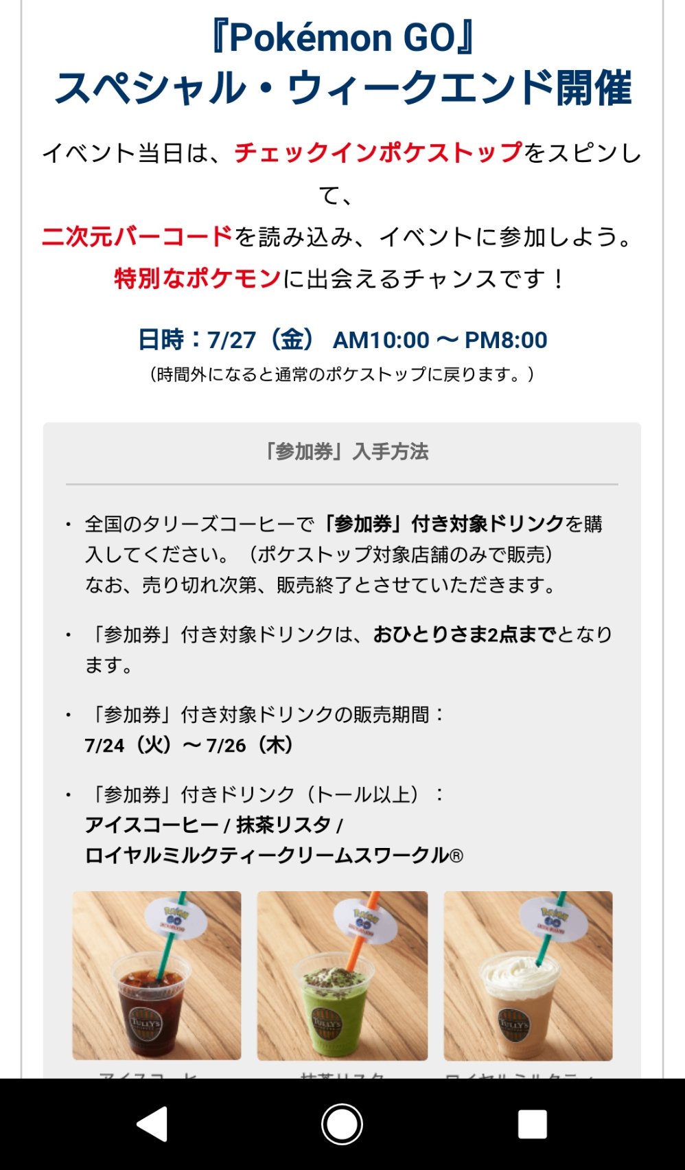 どのタリーズで pokemon goスペシャル ウィークエンド 参加券をもらえる ケータイ watch