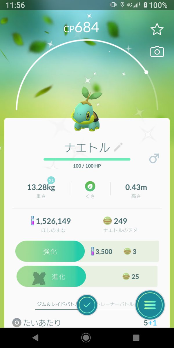 ポケモンgo ナエトルコミュニティデイ ほしのすな3倍 色違いはいかに