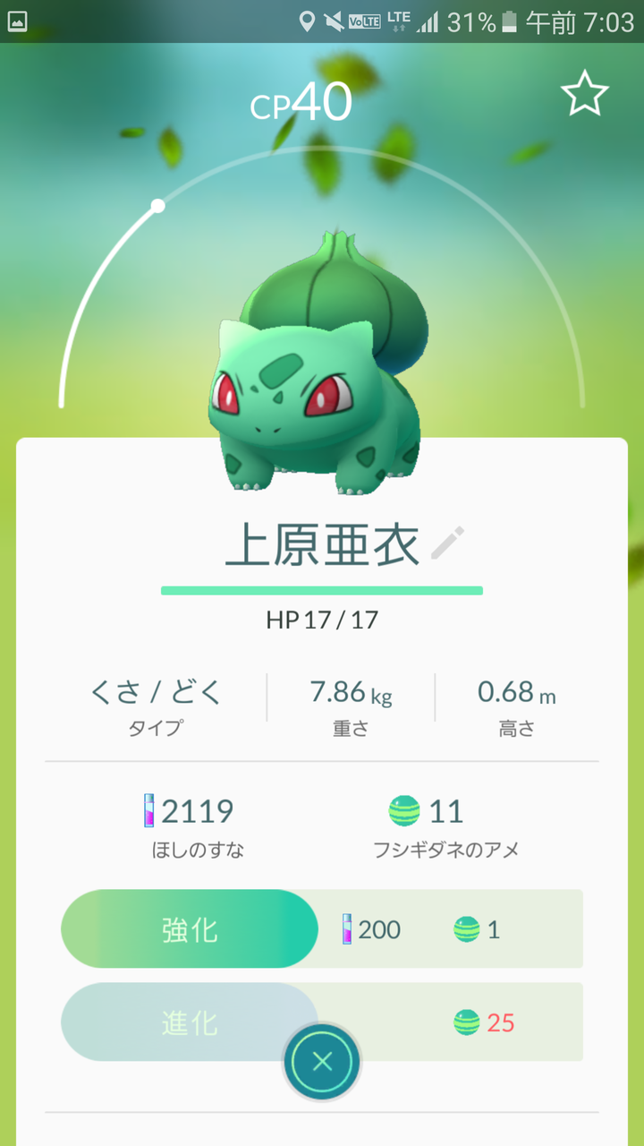 ポケモンの名前変更と星の砂 ポケgoレベル40を目指して