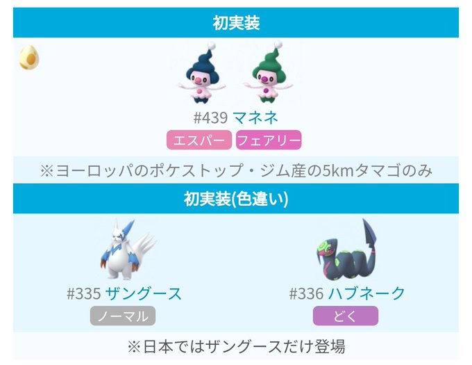 ポケモンgo マネネ実装 ハブネークとザングースの色違い実装 延期のファイヤーにラプラス pokemon go イベント情報 poke go life