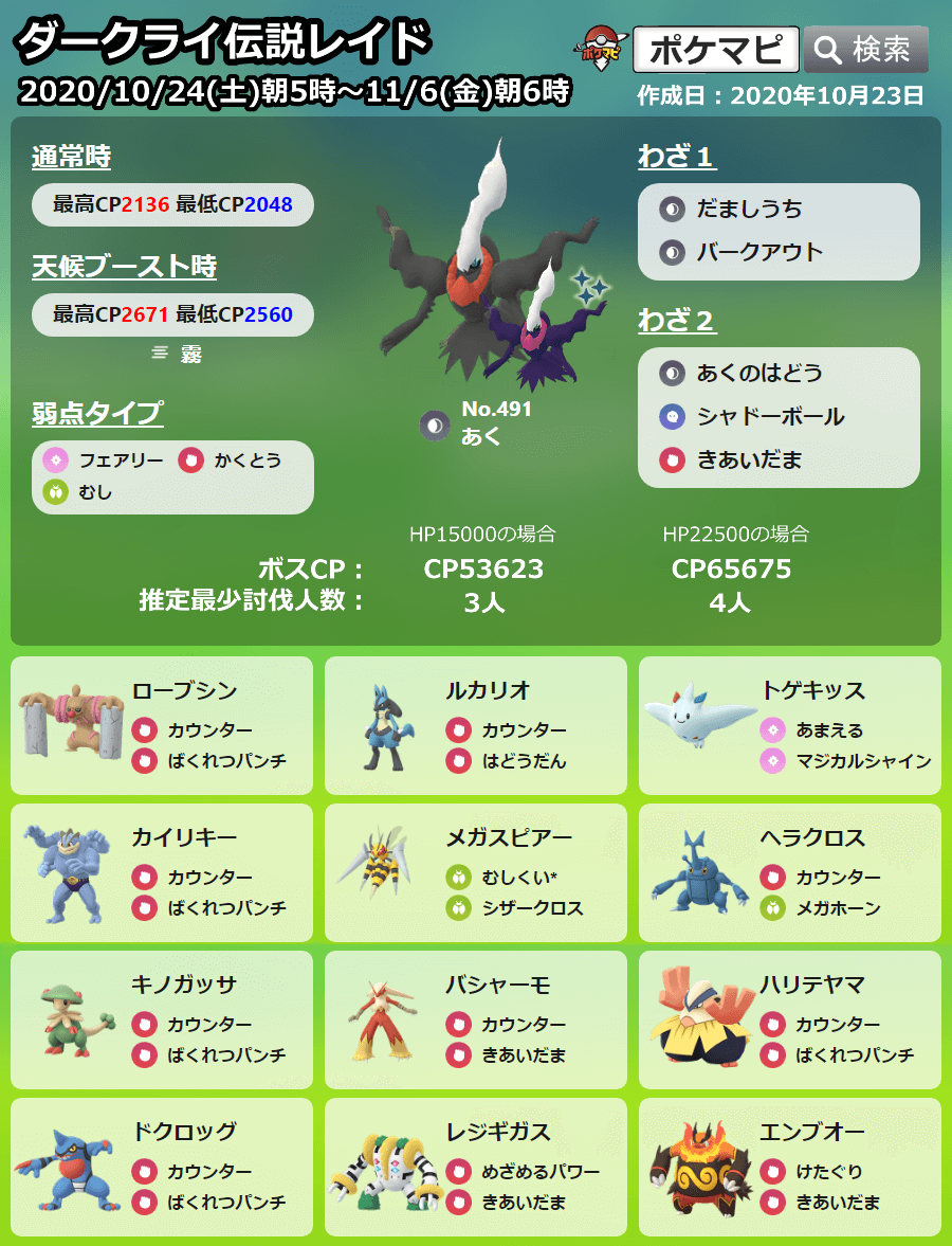 ポケモンgo レイドボス一覧 色違い 対策 個体値100 cp 討伐人数情報まとめ ポケらく