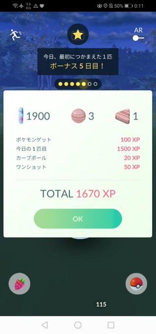ポケモンgo ゲットボーナス7日目 毎日ゲットボーナスで2000xpと道具37個をゲット