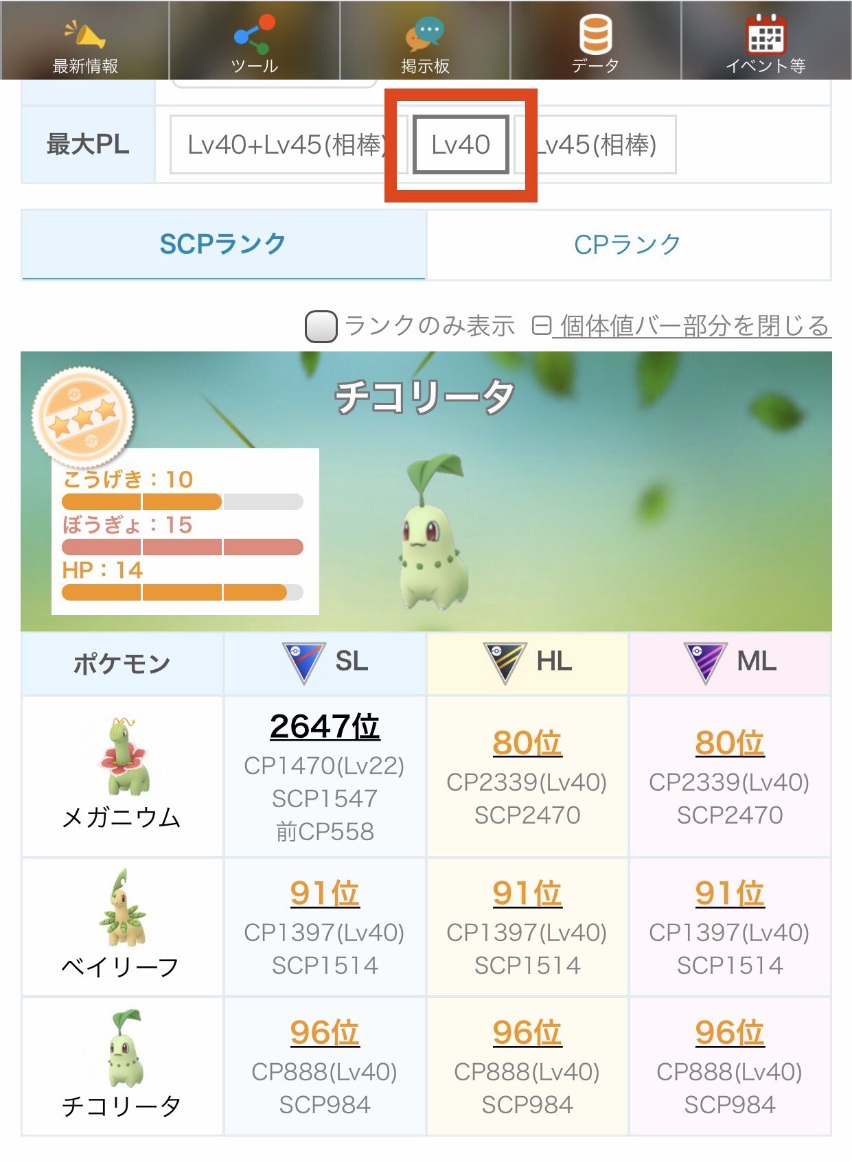 ポケモンgo攻略 みんポケ pa twitter 個体値ランクチェッカー更新 最大plを40 45の範囲で選択できるようにしました 初期設定は相棒ブーストであるlv41が選択されています https t co idk6hvkdtc ポケモンgo