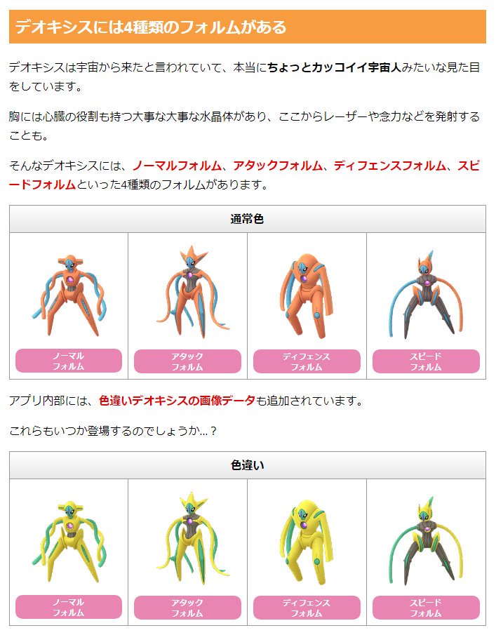ポケモンgo 色違いも初実装 デオキシス 襲来 対策ポケモンと弱点はコレだ ロケットニュース24