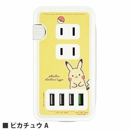 ポケットモンスター usbポート付きacタップ ポケモン ピカチュウa でんきタイプ スマホ 充電器 iphone android 人気 アニメ かわいい usb