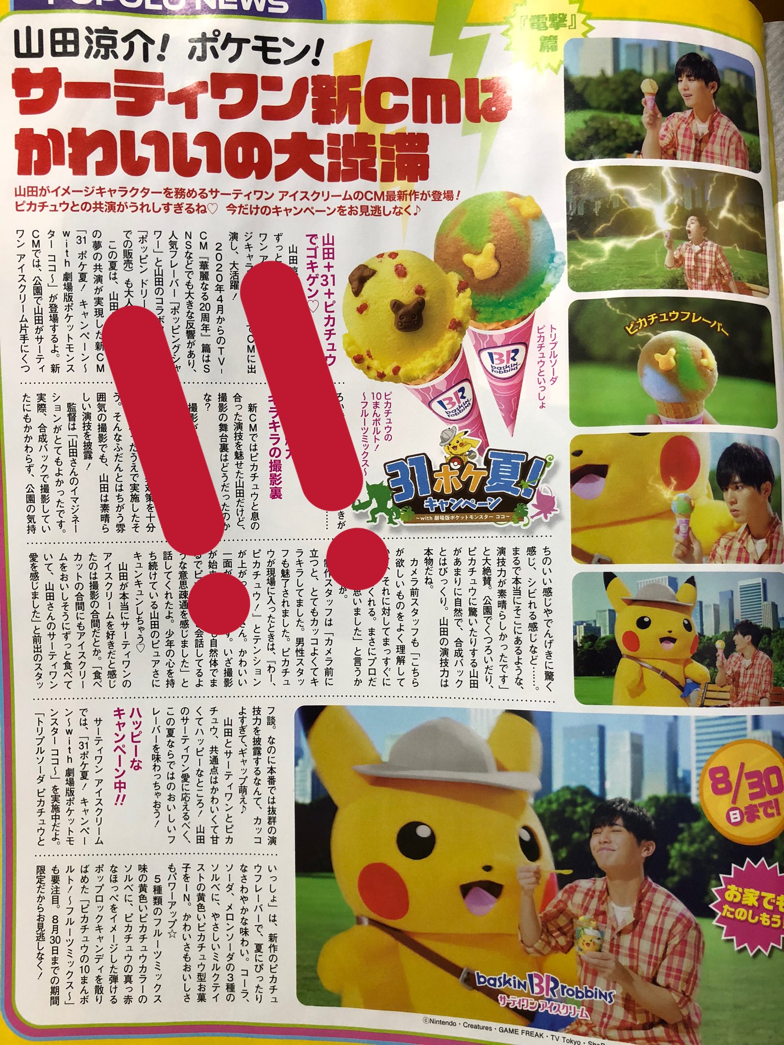 山田涼介 heysayjump ピカチュウ サーティーワン cm 電撃篇 今年の夏はポケモンを楽しもう ヘイセイジャンプ cm bb navi