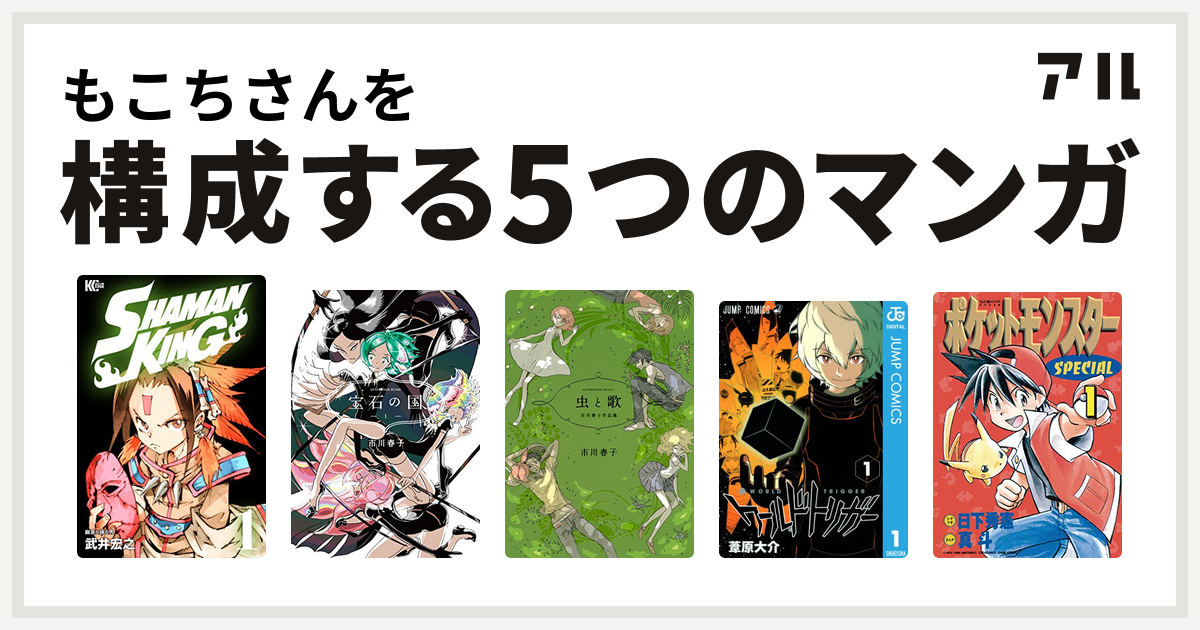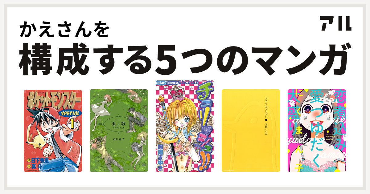 かえさんを構成するマンガはポケットモンスタースペシャル 虫と歌 市川春子作品集 チェリッシュ おやすみプンプン 恋煮込み愛つゆだく大盛り 私を構成する5つのマンガ アル